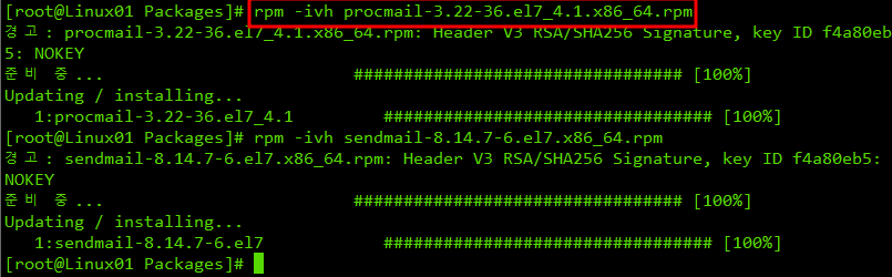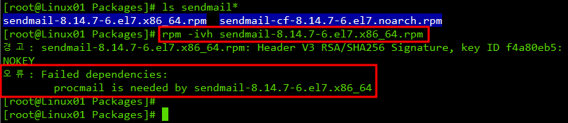 -아래와 같이 procmail을 설치 후, sendmail을 설치하면 정상적으로 설치가 된다.