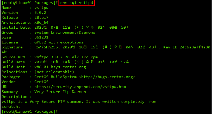 | 패키지 이름 | 패키지 버전 | 릴리즈된 번호 | CentOS 버전 | 아키텍쳐 | 확장자 |