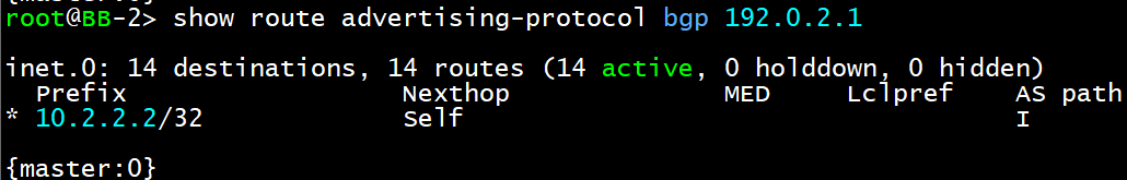show route advertising-protocol bgp 192.0.2.2