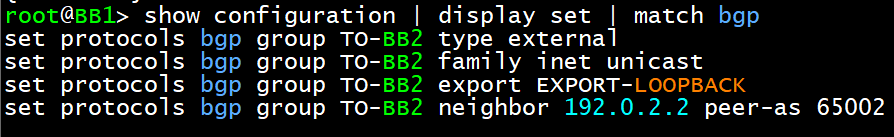 set protocols bgp group TO-BB2 export EXPORT-LOOPBACK
